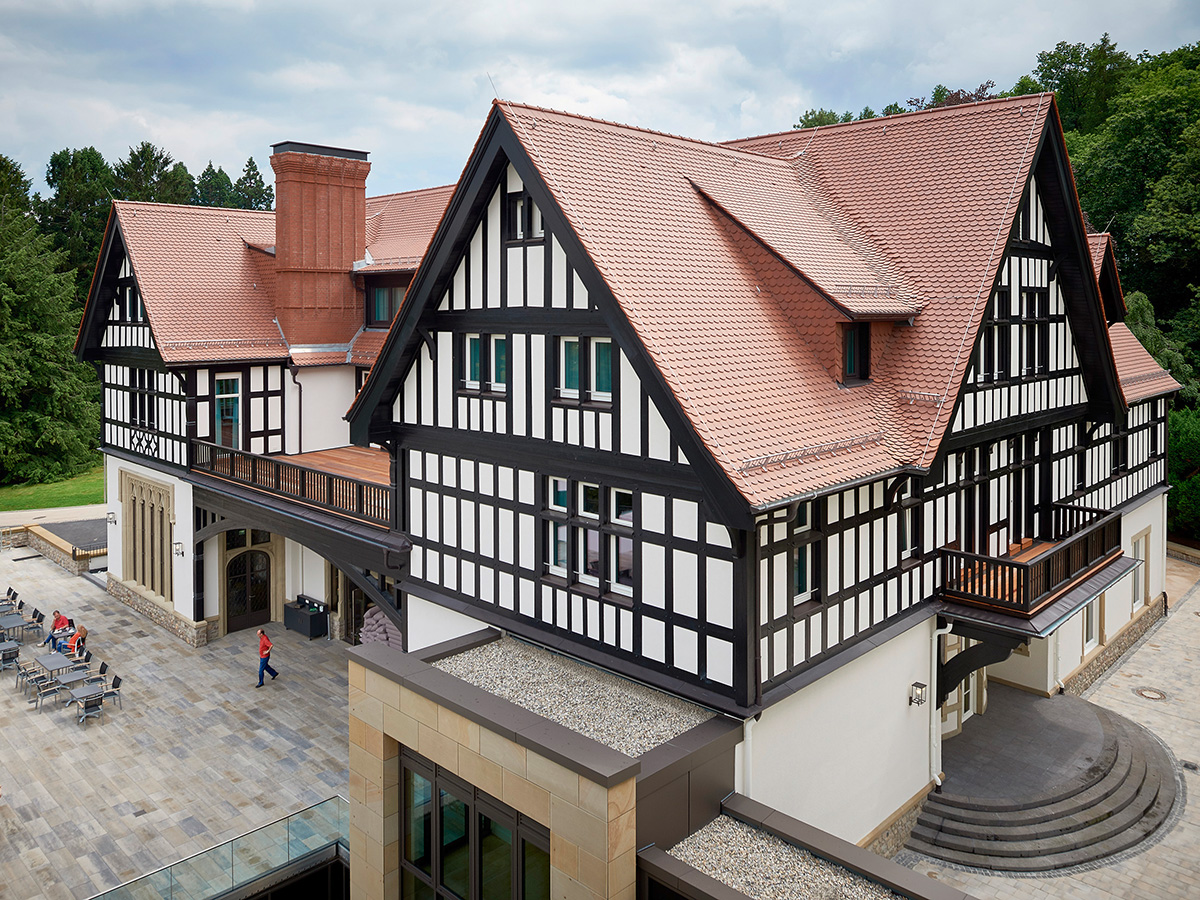 Die 1911 erbaute historische Unternehmervilla "Villa Gans" im Fachwerkstil ist das Herzstück der exklusiven und repräsentativen Hotelanlage im eigenen Park. In direkter Verbindung zur komplett restaurierten "Villa Gans" befindet sich ein eleganter Hotelneubau.